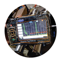 Ultrasonic Testing is done on materials to determine whether there are flaws or defects present in a material and also to determine the thickness of a material / object. UT makes it possible to find flaws inside the material. High frequency sound waves are sent into the material with an ultrasonic transducer. The ultrasound that reflects off defects in the material is made visible in a graph. UT gives insight in the depth, size, nature and orientation of the defected indications. The thickness of the material such as wall thickness of pipes can also be measured.
